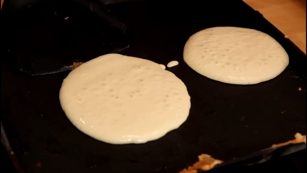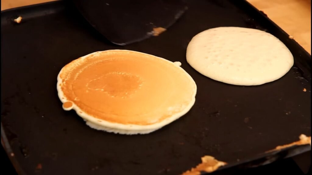 During this time, watch for visual cues that indicate when the pancakes are ready to flip. The edges will begin to look set, and bubbles will appear across the surface of the batter.