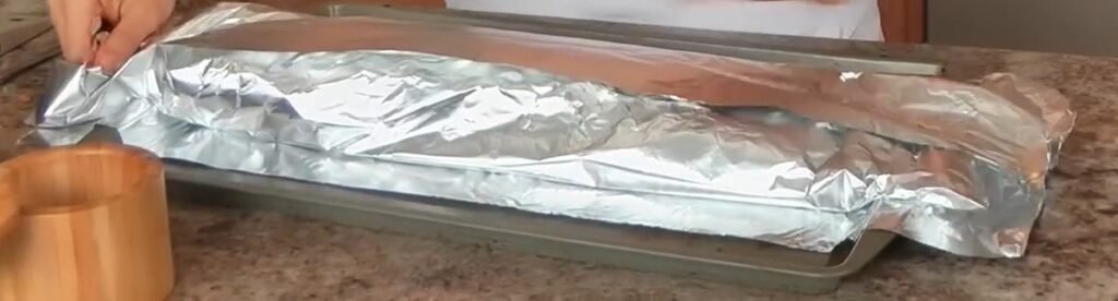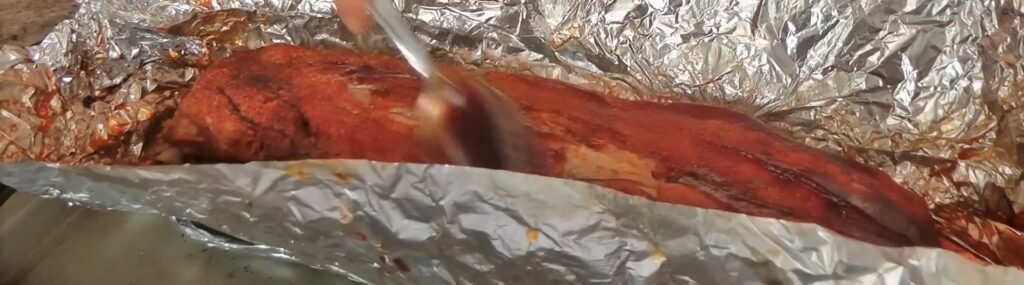 Lay out several large sheets of heavy-duty aluminum foil on a clean surface, enough to fully enclose the ribs without gaps. Place the seasoned ribs meat-side down in the center of the foil, then fold the edges up and over tightly, creating a sealed packet that traps steam and juices during cooking. The foil wrap is key to low-and-slow cooking, mimicking a smoker effect in the oven for tender results.