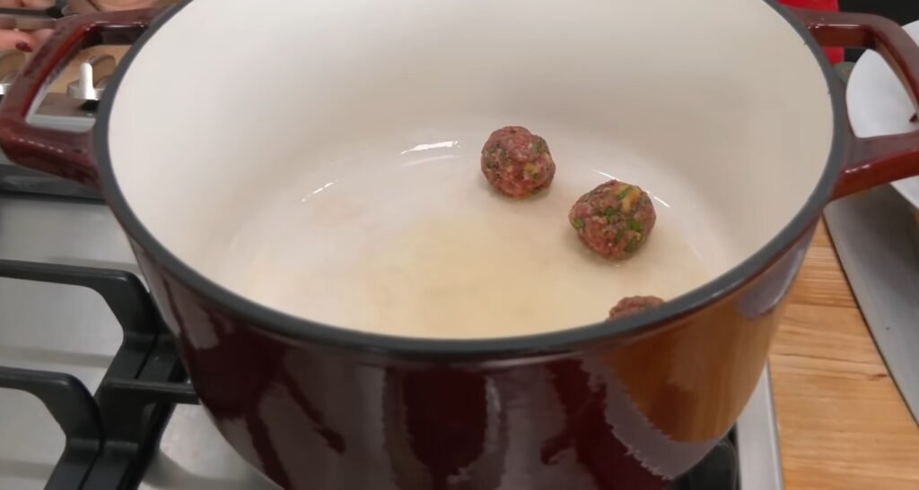 Heat a drizzle of olive oil in a Dutch oven or large skillet over medium-high heat until shimmering. Sear meatballs in batches, avoiding overcrowding to maintain heat and achieve browning; cook 2-3 minutes per side until golden crust forms, turning with tongs.