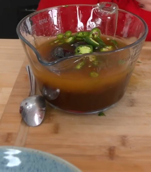 While searing, mix sauce in a measuring cup: combine 3/4 cup spicy sweet BBQ sauce (store-bought or homemade), 1/4 cup Thai sweet chili sauce (scrape jar clean with water for every bit), few dashes Worcestershire, 3 tbsp grape jelly for glossy stickiness, and sliced jalapeno with seeds for spice.