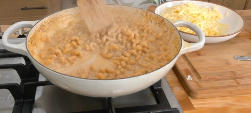 The liquid may seem abundant, but the pasta absorbs it fully. Watch closely to prevent boiling over. This velvety base ensures creamy results without a separate sauce.​