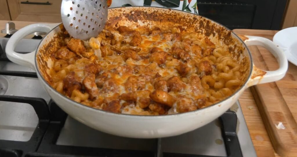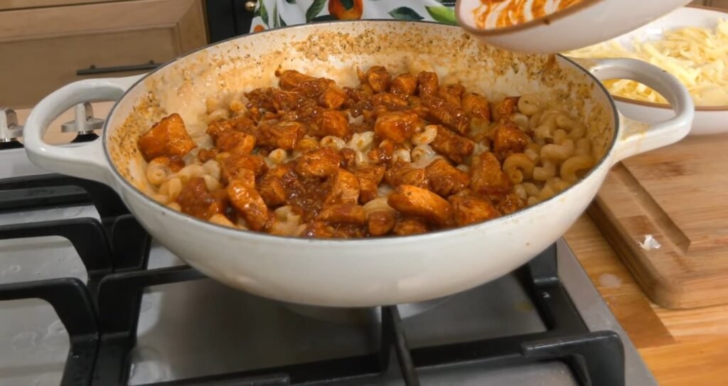 Buffalo Chicken Mac and Cheese delivers bold flavors from spicy buffalo-sauced chicken mixed into creamy, cheesy pasta all cooked in one pot. This easy recipe combines tender chicken bites with cavatappi pasta in a rich cheddar sauce. Follow these detailed steps for a comforting meal ready in under an hour.​​