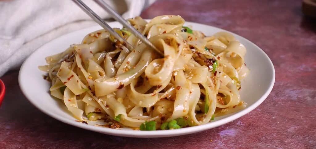 When tossing the noodles, take time to separate any strands that stick together so that each ribbon gets evenly coated in the chili oil and sesame seeds, which helps every bite taste consistent. Serving the noodles right after tossing keeps the texture bouncy and prevents the rice noodles from absorbing too much oil and becoming heavy as they sit.