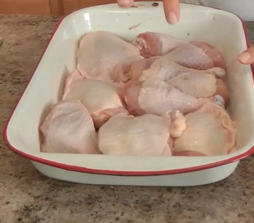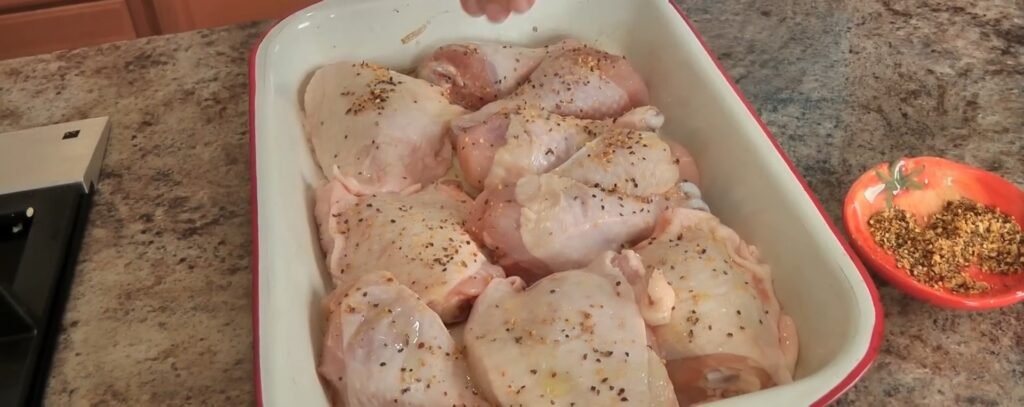 Start by setting your oven to 400 degrees Fahrenheit to ensure even cooking for the bone-in chicken pieces. Select a large roasting pan or baking dish that can comfortably hold all 2-1/2 pounds of chicken breasts and thighs without overcrowding too much, as this allows heat to circulate properly. Line the pan with foil if desired for easier cleanup, though it is optional since the chicken skin will release some fat during baking.​​
