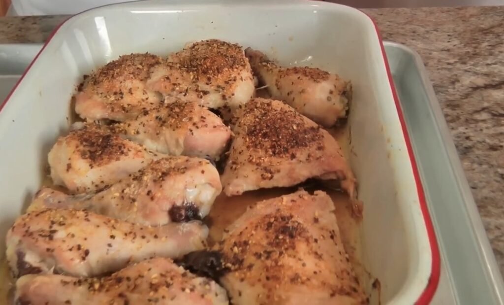 Place the pan on the top rack of the preheated oven and roast for 30-35 minutes, or until the chicken reaches an internal temperature of 165 degrees Fahrenheit in the thickest parts; use a meat thermometer for accuracy to guarantee food safety with bone-in cuts. The oven precook ensures the inside is fully done without charring the outside prematurely on the grill, especially important for larger pieces like thighs and breasts. Rotate the pan halfway through if your oven has hot spots for even browning.​​