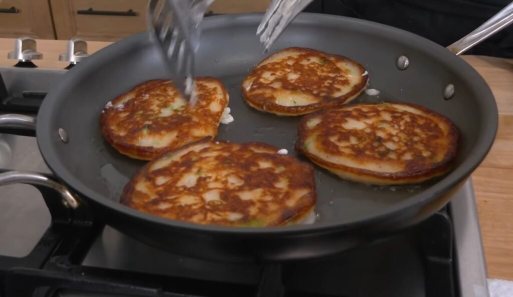 If the pancakes are browning too quickly, reduce the heat slightly. If they are not crisping, increase it just a bit.