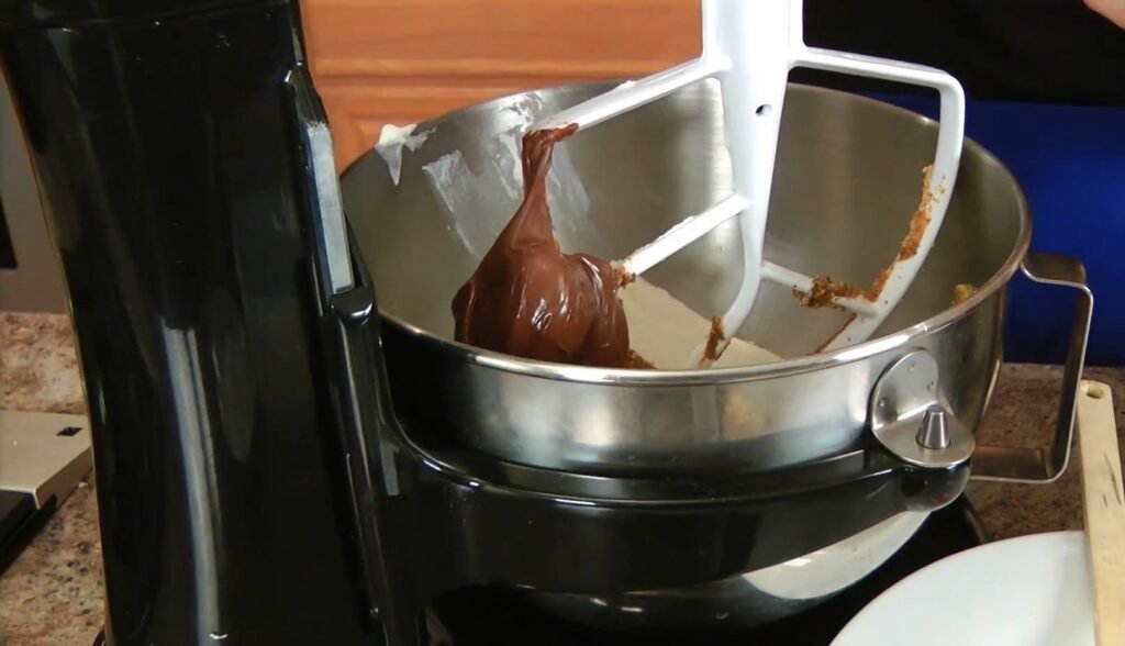 Mix 1 more minute until smooth and thickened. The cream lightens the density, vanilla rounds flavors. Scrape bowl thoroughly; batter should be pourable but hold peaks slightly. Resist adding more Nutella here to maintain balance.