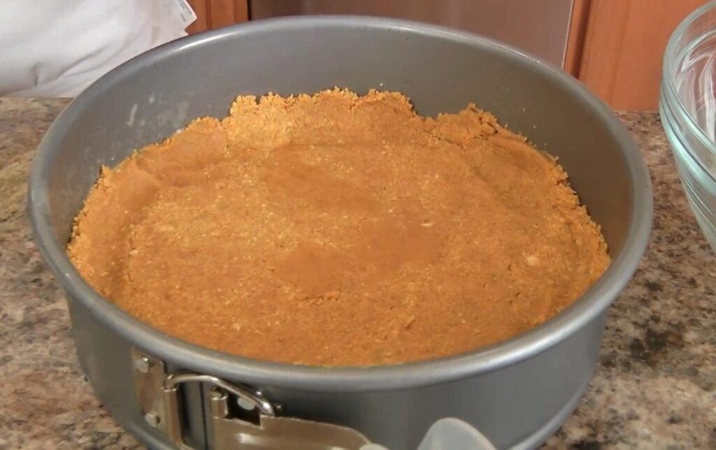 Transfer the crumbly mixture to the prepared springform pan. Use the back of a measuring cup or your fingers to firmly press it across the bottom and about 1 inch up the sides. Distribute evenly for structural support, especially along the edges where filling pressure occurs. Refrigerate the crust for 15-20 minutes to firm up slightly.