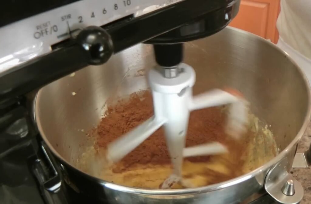 Sift in 3 Tbsp cocoa powder and add 1/4 tsp salt. Mix on low speed until the cocoa is fully incorporated, scraping as necessary. Cocoa provides the chocolate flavor essential to red velvet.