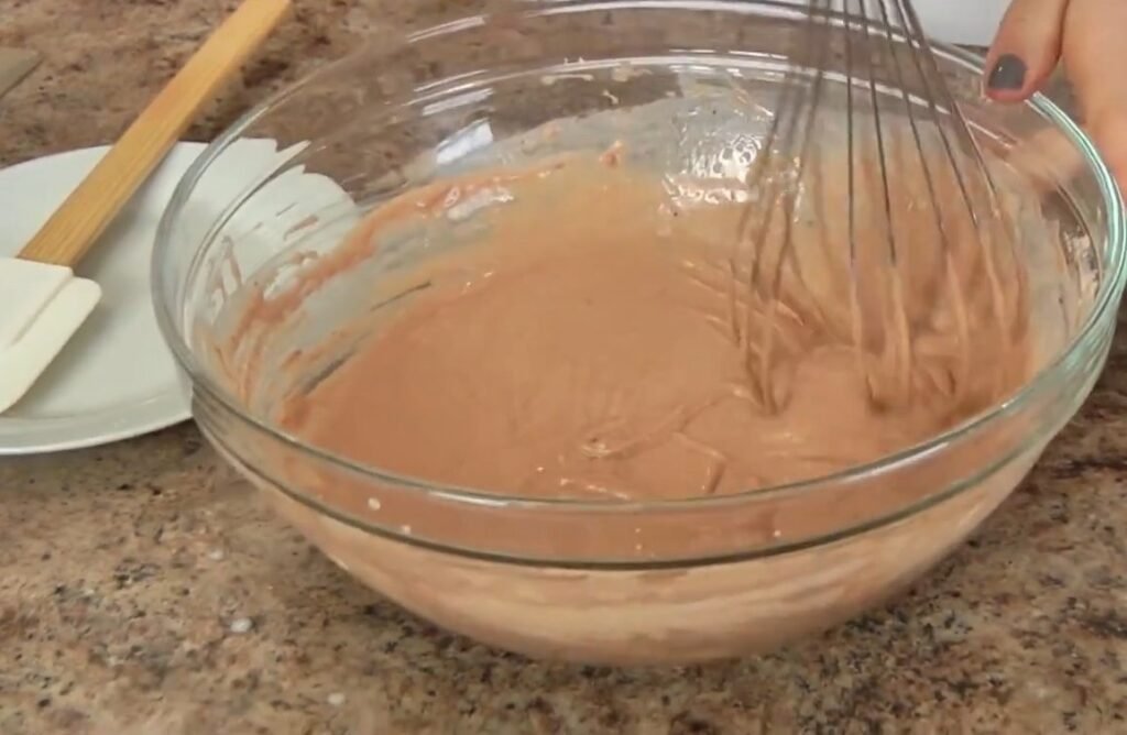 This step is crucial because evenly distributing the baking powder ensures your pancakes rise properly. The cocoa powder should also be fully incorporated so you do not get uneven color or flavor in the batter.