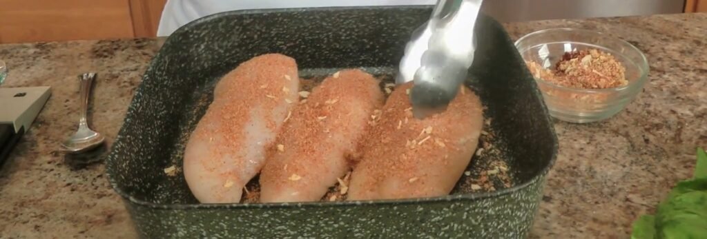 If using bone-in chicken for extra juiciness, adjust cooking time slightly longer, but boneless slices easier for sandwiches. Massage the rub gently to coat evenly, envisioning the smoky aroma filling your kitchen soon. Place seasoned chicken on a baking sheet or directly on the oven rack if lined properly.