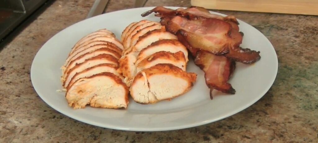 Step 5: Add Bacon and Toast BreadTen minutes before the chicken finishes, place the 8 slices of thick maple glazed bacon on the wire rack over the baking sheet and slide into the oven alongside the chicken. The bacon crisps in just 10 minutes at 425 degrees, rendering fat perfectly while catching maple sweetness. In those same last 10 minutes, add your 8 slices of sourdough bread to the oven, drizzled lightly with olive oil on both sides for toasting.