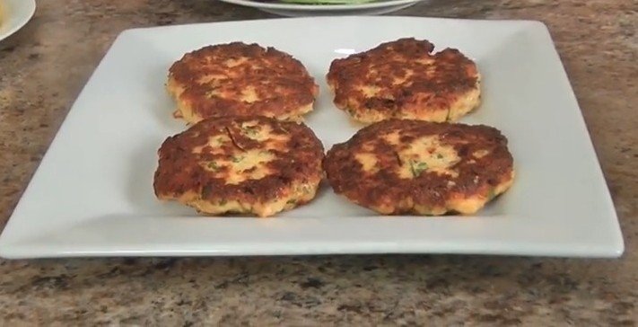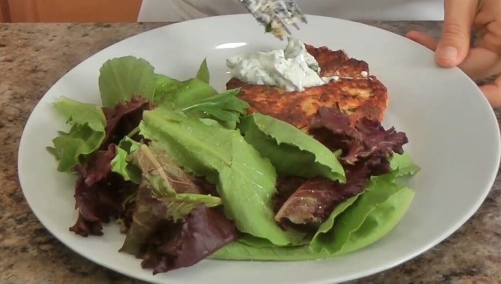 Form each portion into a ball first, then gently flatten into patties about 1/2-inch thick. Press firmly but not too hard to maintain shape. You should see small salmon chunks, indicating proper texture.